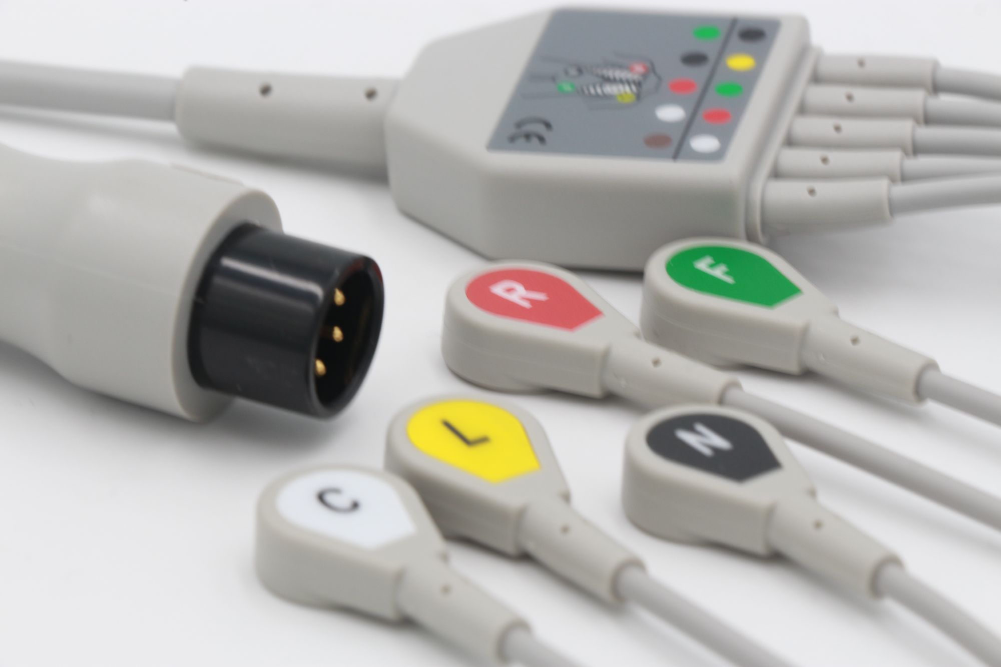 • One-Piece ECG Cable with 5-Lead Wire/6Pin